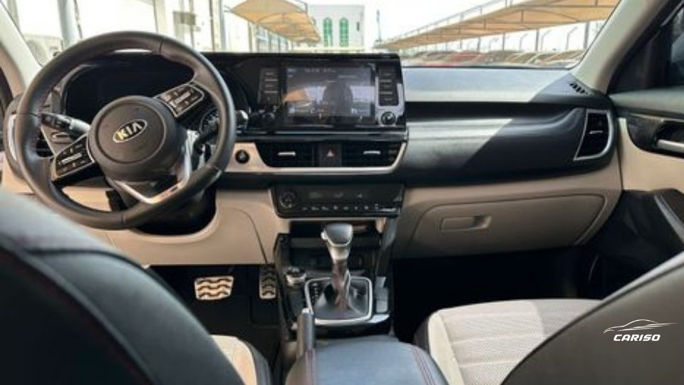 طزاحان داخلی از آن دسته افراد هستند که می گویند کابین واجب تر از بیرون خودرو است چرا که به محض وارد شدن به کابین مشکی-کرم  کیا سلتوس ۲۰۲۳ ، انگار یک الی دو سال جلوتر رفتیم و برخلاف طراحی بیرونی با ظاهری عامه پسندتر و بروزتر روبرو می شویم. فرمان سه شاخ D کات به همراه پشت آمپر آنالوگش حس جالبی برای من ماشین باز به وجود آورد.